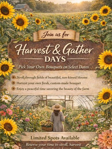 Stroll the farm. Harvest your own bouquet, & savor the beauty of the season.