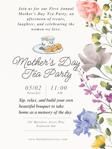 Our first annual Mother's Day Tea Party in the garden. Let's celebrate the women we love with an afternoon of treats, laughter & creating special memories.